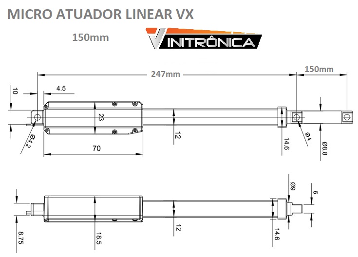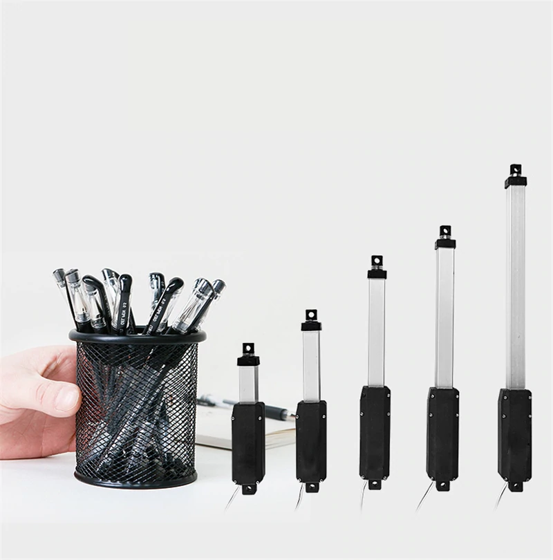 Estes pequeninos atuadores lineares podem ser utilizados no desenvolvimento de microprojetos robóticos, brinquedos, automação de processos microcontrolados, dentre outros. Estão atualmente disponíveis em 12V, com cursos de 15, 25, 50 e 150mm, com força de 20N (2,0kg) e velocidade de 13mm/s. Possuem elevada resistência às intempéries, podendo ser utilizado em ambientes úmidos ou expostos a respingos/jatos de água.